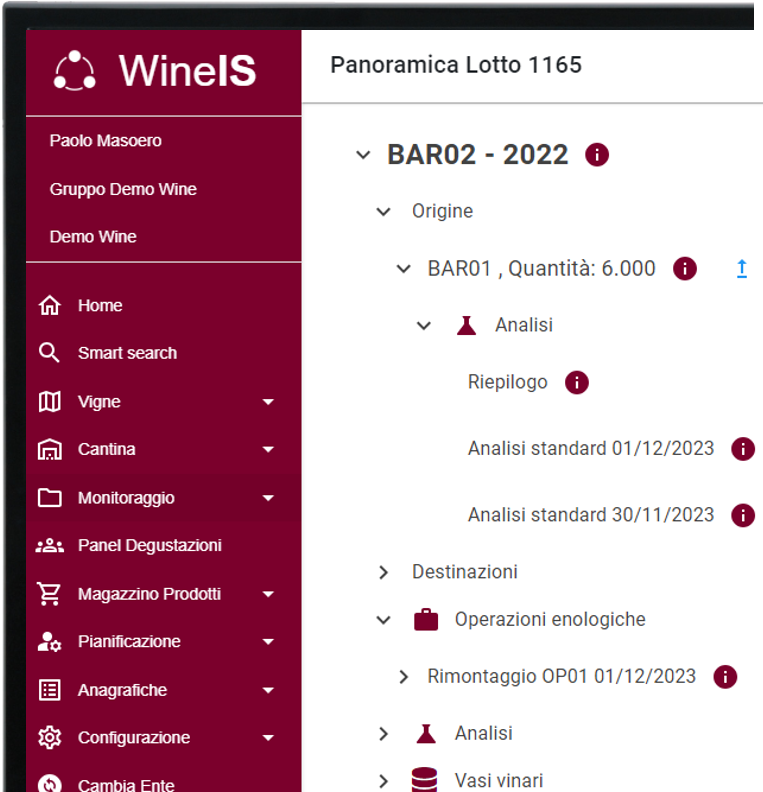 WineIS è la piattaforma web e mobile per collezionare, gestire e valorizzare tutti i dati che caratterizzano la produzione del vino dalla vendemmia alla bottiglia