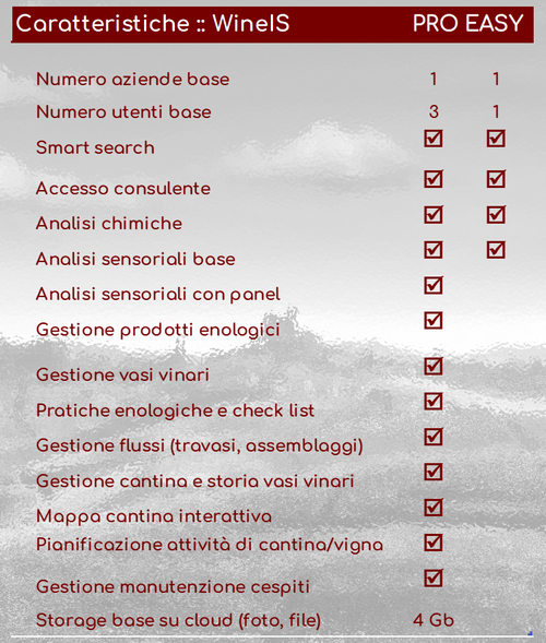 I costi del servizio si basano sul singolo vino indipendentemente dall'annata e/o dal lotti, ReadyToWine è gratuito per chi usa WineIS PRO